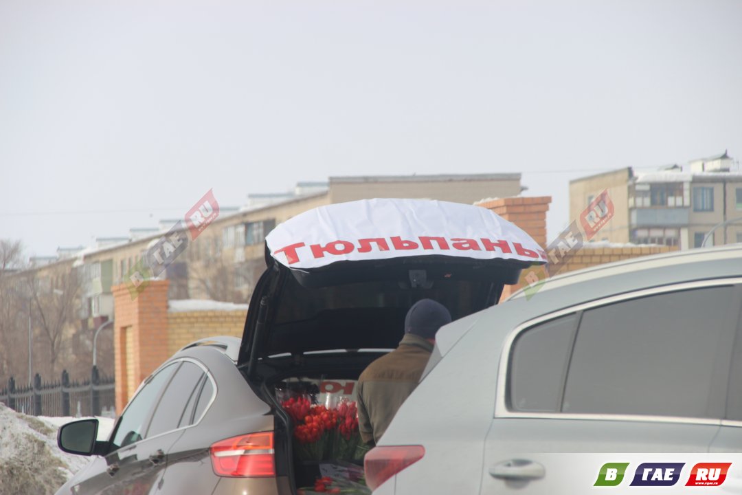 Сегодня в Гае наблюдается "тюльпановое наводнение". В сетевых магазинах - тюльпаны, в киосках - тюльпаны, на улицах города - машины с тюльпанами.