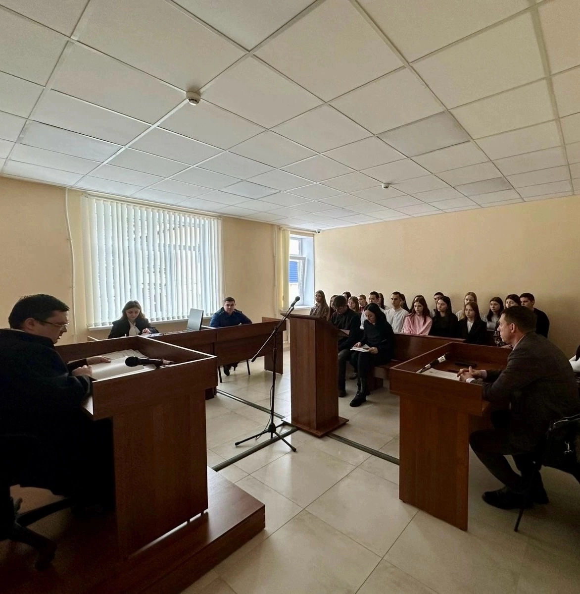 13 февраля 2025 года в рамках реализации проекта «Доступно о праве» студенты 1 и 3 курсов ГАПОУ «Педагогический колледж г. Бугуруслана» по специальности «Право и организация социального обеспечения» присутствовали в судебном заседании по уголовному делу под председательством мирового судьи судебного участка №2 г. Бугуруслана и Бугурусланского района Оренбургской области судьи Коновалова И.В. Рассматривалось дело по обвинению в совершении преступления, предусмотренного ч.1 ст. 112 Уголовного кодекса Российской Федерации.