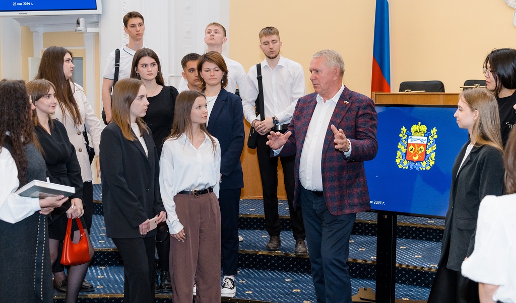 Экскурсию в областной парламент для будущих юристов провел зампредседателя Законодательного Собрания Александр Куниловский.