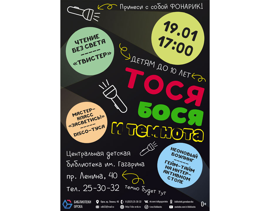 19 января в 17 часов – интерактивная программа «Тося, Бося и темнота» (0+).