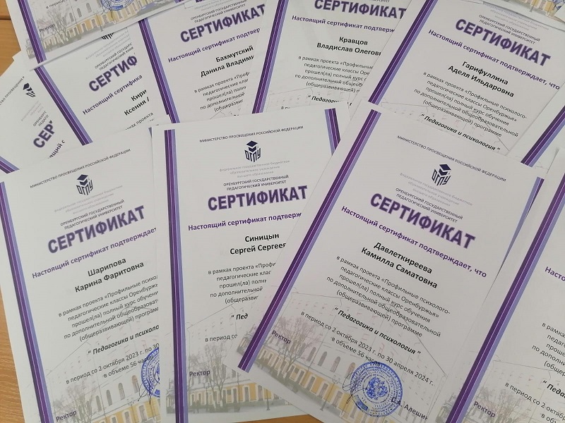 В соответствии с Программой развития университета и в рамках реализации проекта «Профильные психолого-педагогические классы Оренбуржья» с 02.10.2023 года по 30.04.2024 года Институтом педагогики и психологии реализовывалась дополнительная общеобразовательная (общеразвивающая) программа «Педагогика и психология» для обучающихся 10-11 профильных психолого-педагогических классов Оренбуржья.
