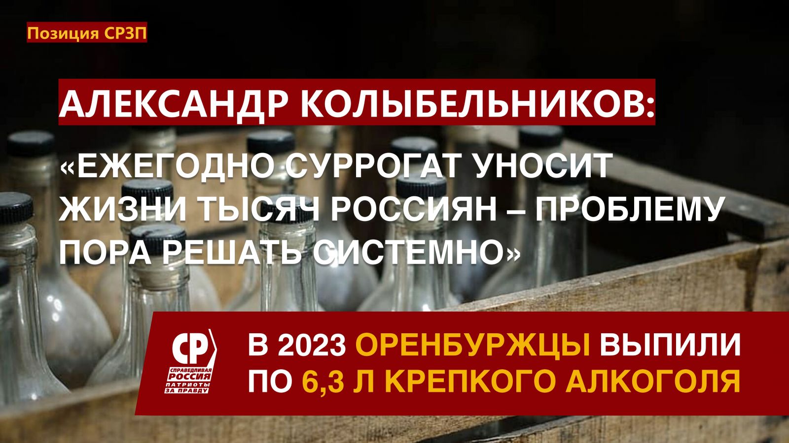 "Ежегодно такое "пойло" уносит жизни тысяч россиян – примерно столько же жителей в Грачевском, Домбаровском или Светлинском районах Оренбуржья. Проблему пора решать централизованно" – подчёркивает Александр Колыбельников, депутат Законодательного Собрания Оренбургской области.