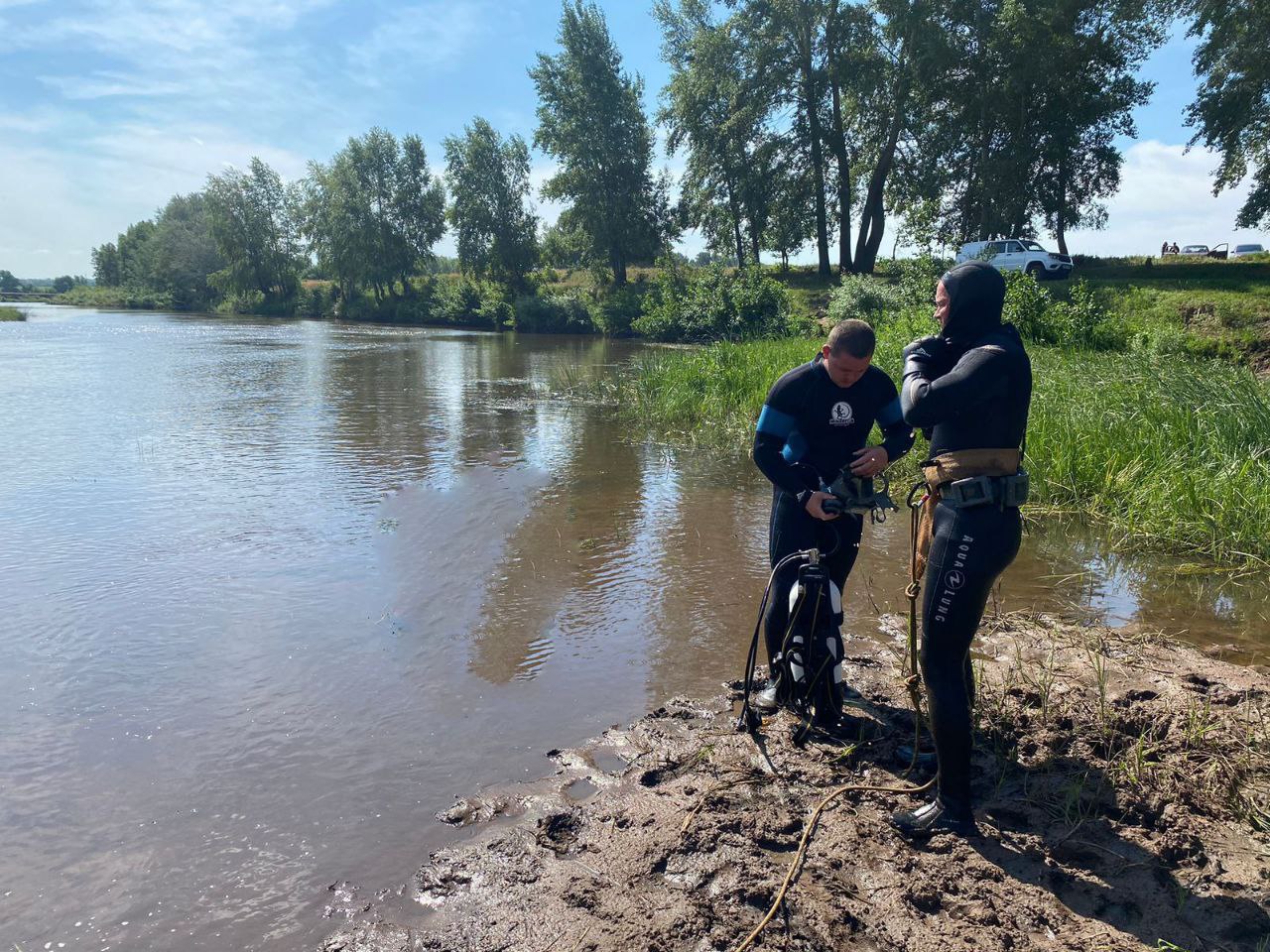 Работа водолазов в Октябрьском районе, где сегодня утонул мужчина Под Соль-Илецком во время купания в речке пропали два подростка.