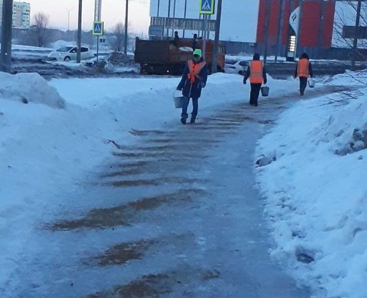 На улицах города сейчас действуют бригады муниципальных коммунальных предприятий «БиОз» и «Комсервис». Рабочие посыпают пешеходные дорожки антигололедными средствами и расчищают остановки общественного транспорта от глыб льда. От снега убирают пешеходные переходы, тротуары, спуски и подъемы. Работы выполняются на улицах Шевченко, Одесской, Волгоградской, Бебеля, Магнитогорской и проспекте Гагарина.
