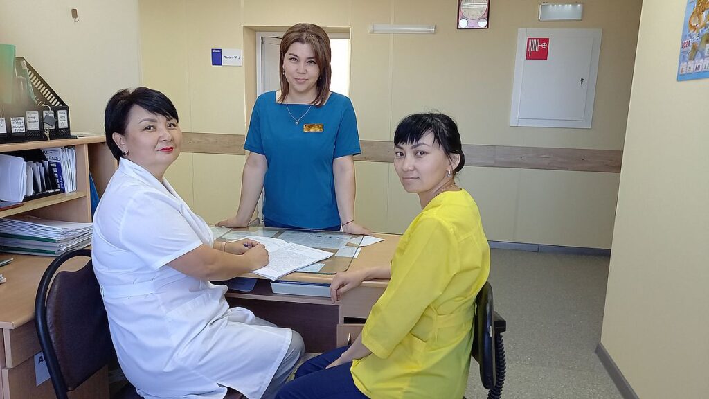 Старшая в поликлиникеС 2022 года работает старшей медицинской сестрой взрослой поликлиники Амина Сарбаева. Ее общий стаж работы в медицине составляет 18 лет.