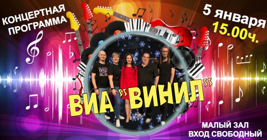 5 января в 15:00 в малом зале Молодежного центра состоится концерт ВИА "Винил".